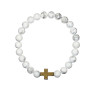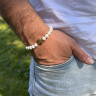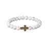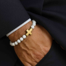 Cross jewelry is very popular nowadays among both women and men. This stylish men's wrist accessory in the form of a bracelet with a decorative cross will make a wonderful gift or souvenir for men. The piece is designed in a strict and concise style, with an accent on the cross-shaped hardware. Natural white calcite stones were used in the jewelry.