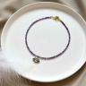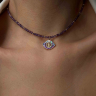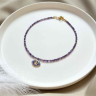 Choker made of natural amethyst stone. Bead diameter - 2-3 mm. Deluxe hardware, hypoallergenic steel. Choker base - jewelry cord. Choker length 36 cm + 6 cm extension chain. Pendant - eye.