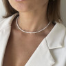 A choker is a short necklace that fits closely around the neck and has an adjustable length. This model of necklace is made from natural pearls. The delicate and refined neck accessory is highly popular. The pearl necklace is handmade. The choker length is 36 cm + 6 cm extender.