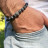 Lebijou bracelet made from natural obsidian stone with a lion charm. Color is gray with black. Bead diameter - 8 mm. Features a double strong elastic base.